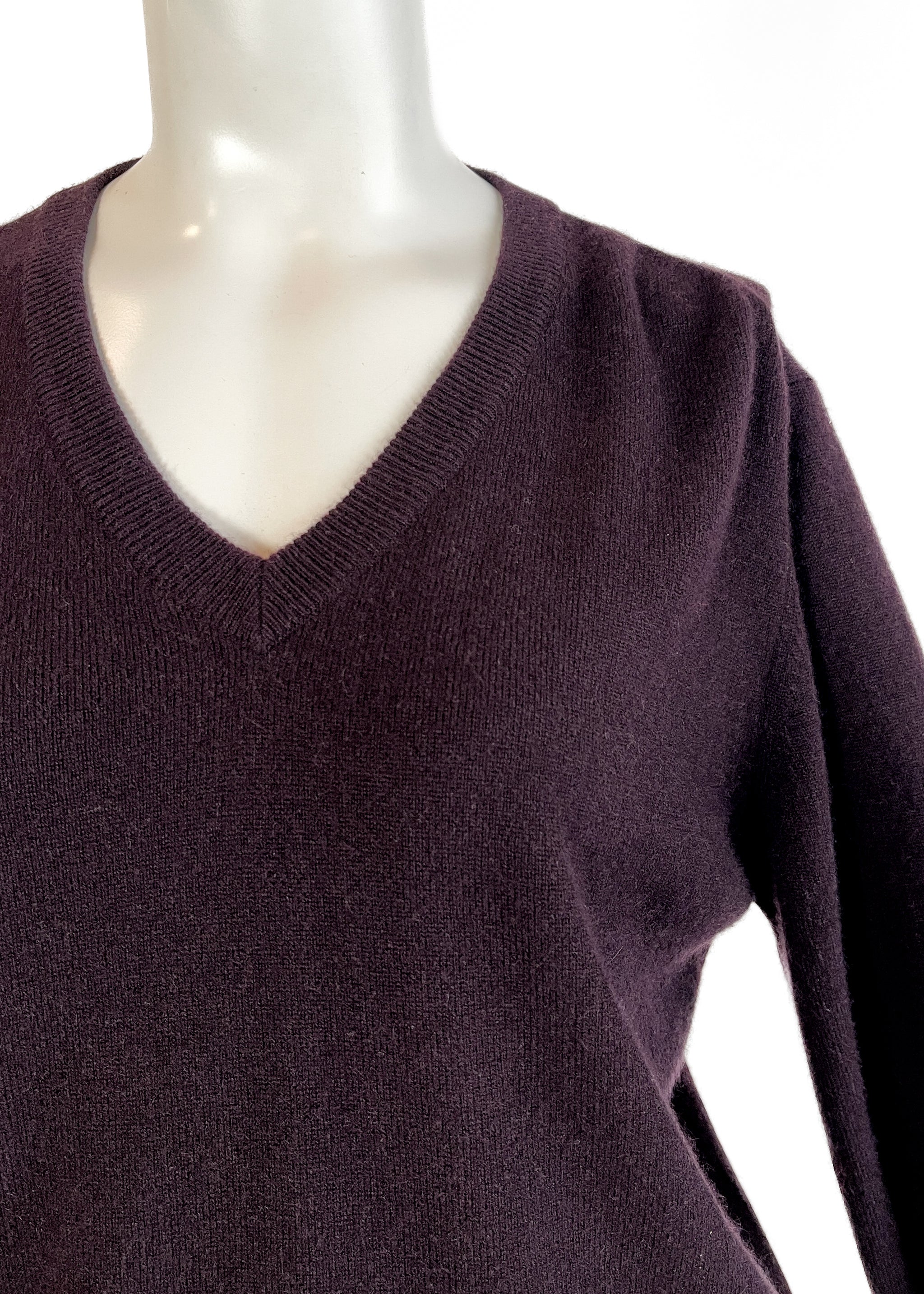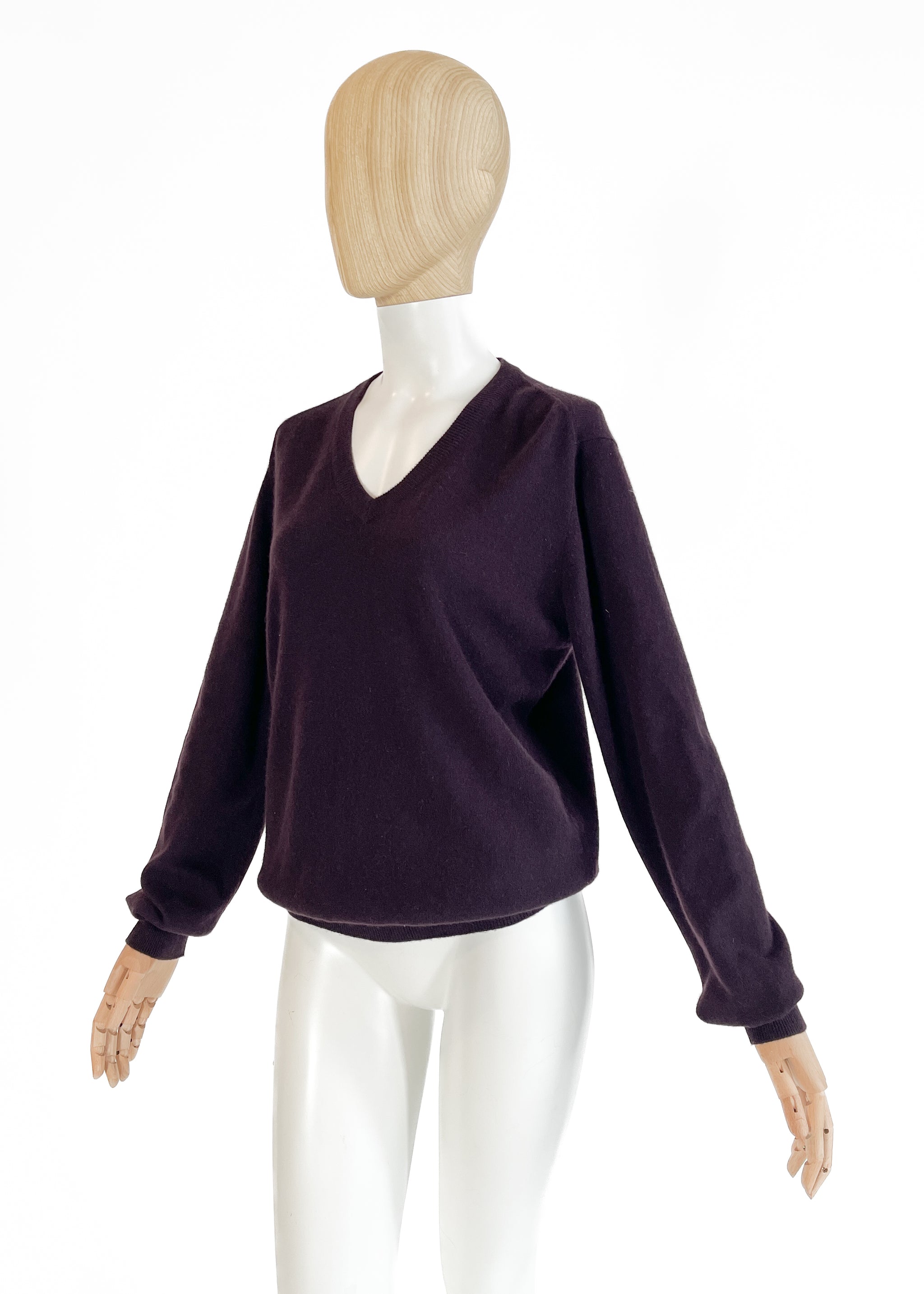 Super soft dark brown cashmere. Classic V-neck; menswear style. Looks great worn slightly oversized. Made in Italy. Sourced in Paris.