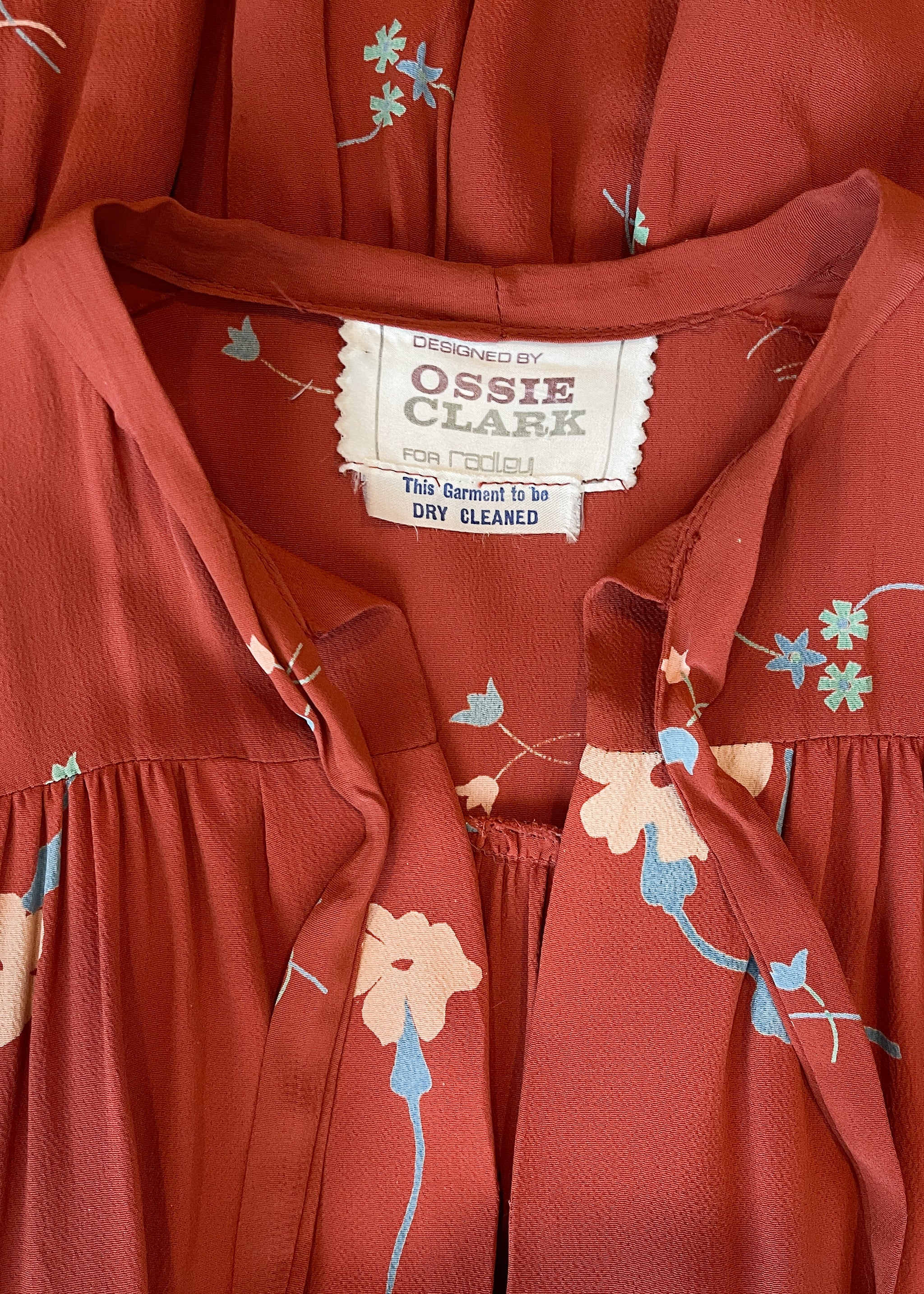 DETAILS Label: Ossie Clark for Radley Circa: 1970s Condition: Overall very good. The dress shows light, normal wear. There are some spots on the back (see photo) that easily get lots in draping. Priced accordingly.