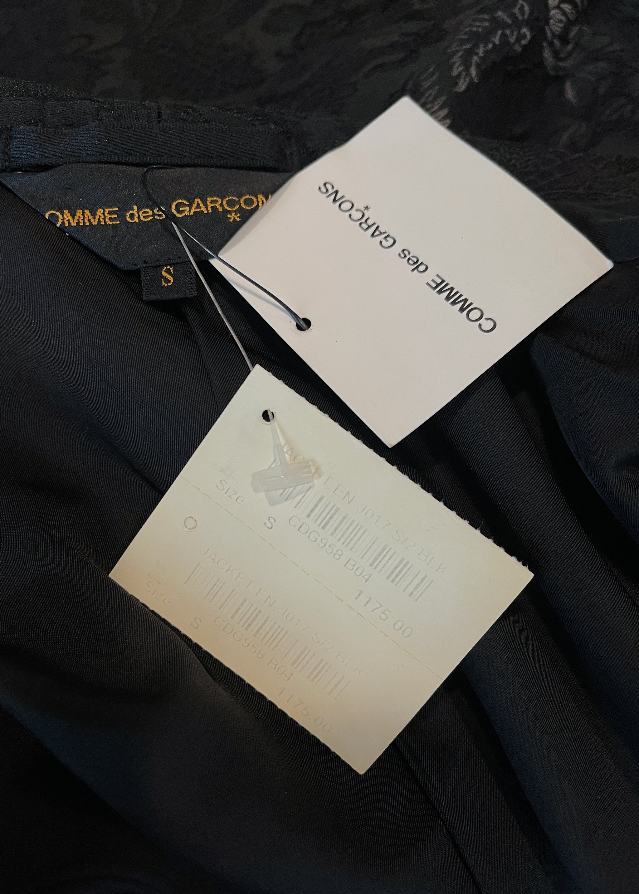 DETAILS Label: Comme des Garçons Circa: Fall 2004 Condition: Overall excellent. The jacket shows light, normal wear. Original tags are present. There is some ombre 'fading' here and there especially along one side. We are not certain if this is intentional or not. If so, it is lovely and adds to the antique vibe. If not, it is lovely and adds to the vintage charm.
